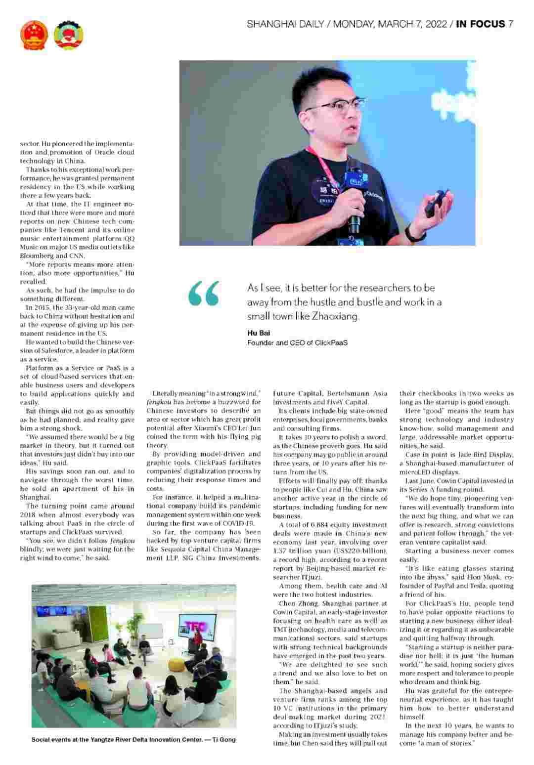 • 《上海日报》专访圆梦钱包创始人、、、、CEO胡柏,,,,探究其创业背后的故事!!!