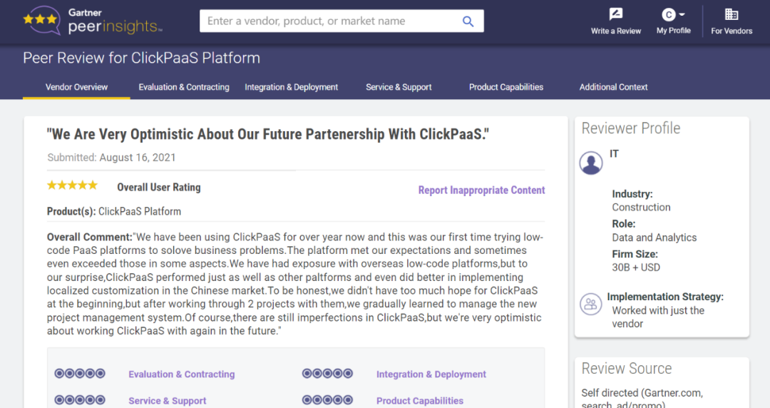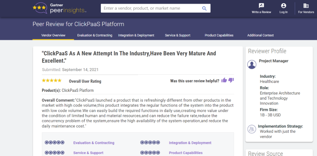 Tips::::【Peer Insights】——用户对企业IT产品和服务发布真实评价的平台。。。目前已有355个市场,,255,000条经过验证的评价。。。每一条评价Gartner会针对参评企业营收规模及参评人员信息做验证、、、、评价内容做多维核实。。。